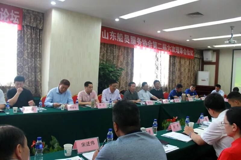 5月24日,山东船员服务协会第二届六次理事会议,在烟台华航国际船舶管理有限公司召开。山东海事局船员管理处处长邵广宝、山东省海员工会主席马骥出席会议并讲话;山东船员服务协会领导和副会长单位、理事单位领导及专家参加会议;会议由协会秘书长蔺洪波主持。